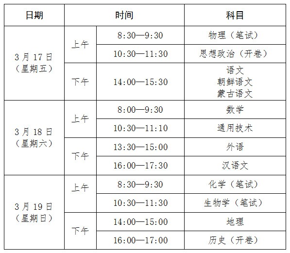 經研究決定2022年下半年我省普通高中學業(yè)水平合格性考試時間調整至2023年3月17日-19日進行,具體考試時間安排如下: