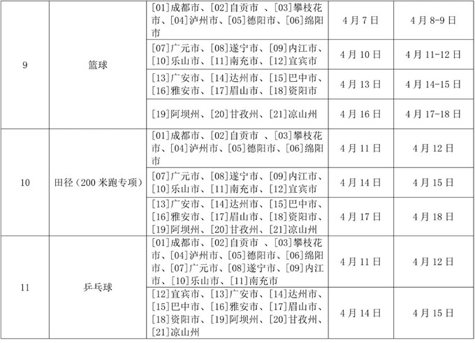 一、體育專業(yè)考試的項目、地區(qū)、時間安排