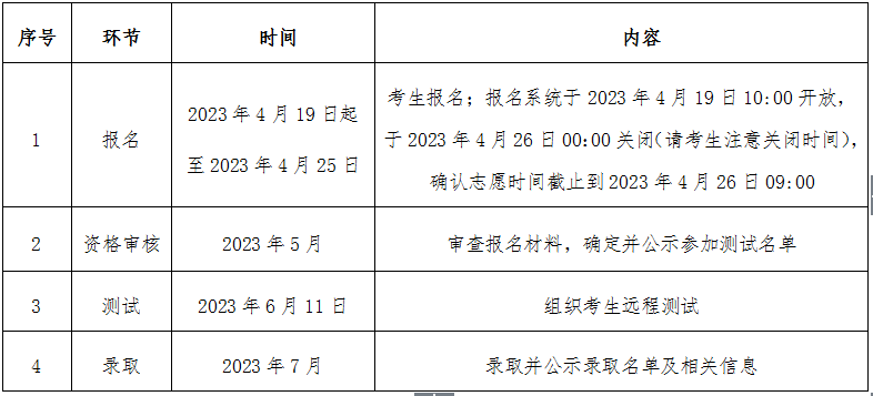 2023年高校專項計劃招生工作程序見下表: