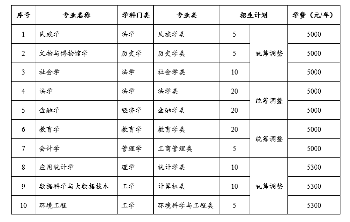 中央民族大學(xué)2023年第二學(xué)士學(xué)位計(jì)劃招生110名,學(xué)制二年,具體招生情況詳見下表: