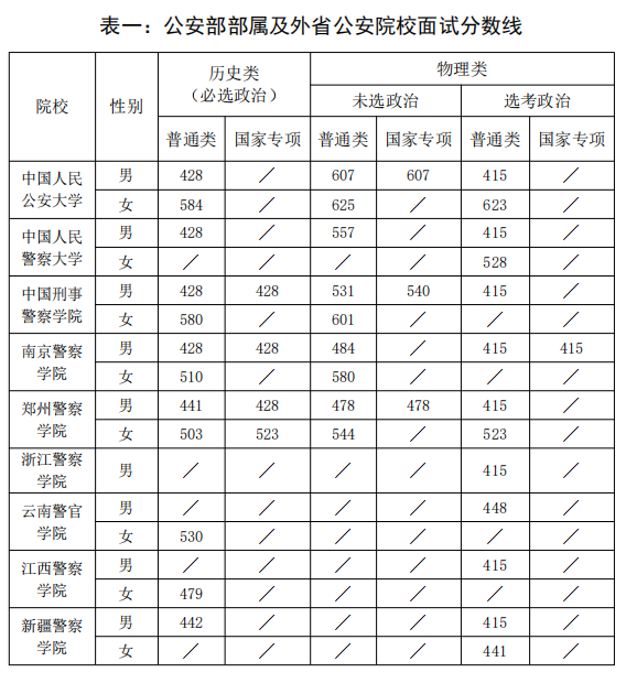湖南省教育考試院、湖南省公安廳政治部根據(jù)公安普通高等院校在湘招收公安專業(yè)學(xué)生的工作要求,劃定了各相關(guān)院校的入圍面試分?jǐn)?shù)線,現(xiàn)公布如下: