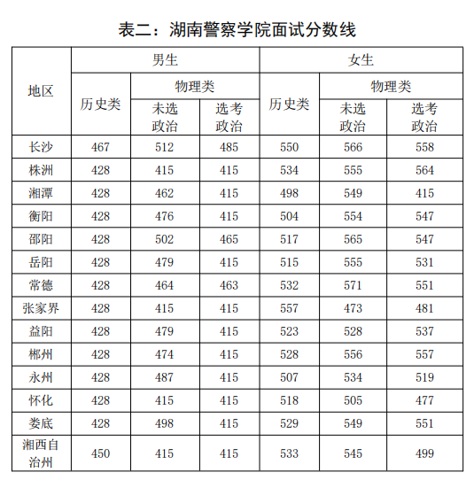 2023年公安普通高等院校在湖南招收公安專業(yè)學(xué)生面試分?jǐn)?shù)線是多少