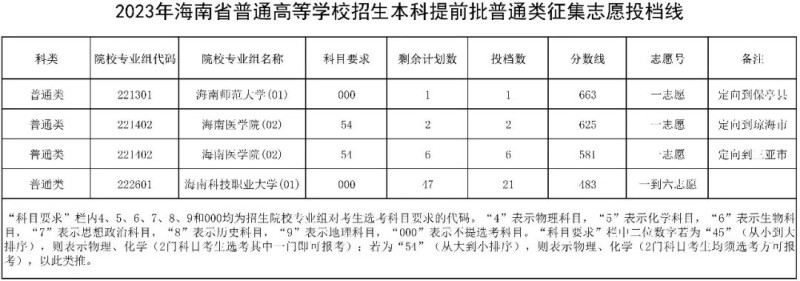海南省2023年高考本科提前批普通類征集志愿投檔線是多少
