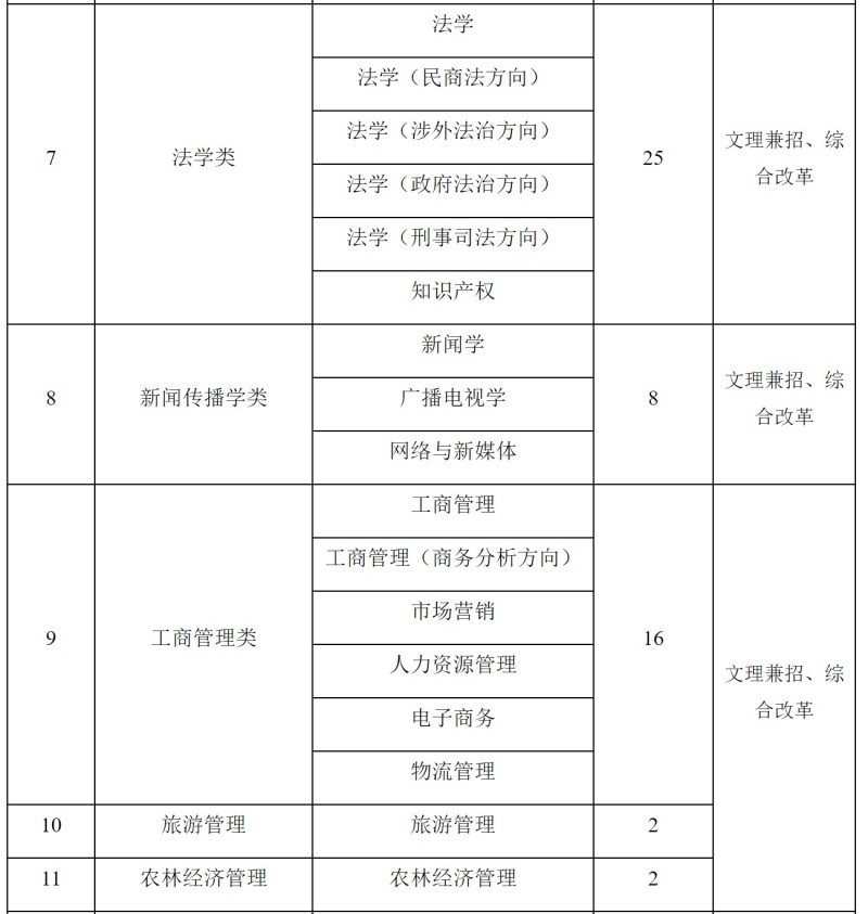 二、招生計劃與專業(yè)(類)