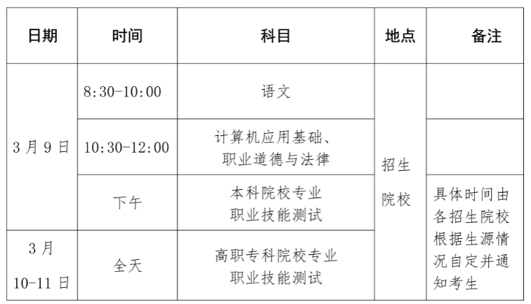 2024年3月22日前,各招生院校須將考生的職業(yè)技能測(cè)試成績(jī)上傳至報(bào)名系統(tǒng),4月12日前省考試局統(tǒng)一向考生公布成績(jī)。