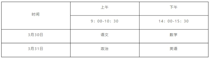 文化考試科目為語文、數(shù)學、政治、英語四科,每科滿分為150分,四科滿分為600分,使用國家通用語言文字作答。
