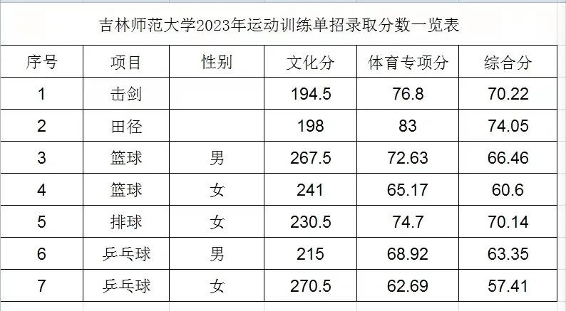 1.文化成績錄取控制線180分。擊劍、田徑和籃球?qū)m棾煽冧浫】刂凭€65分,乒乓球和羽毛球?qū)m棾煽冧浫】刂凭€40分。
