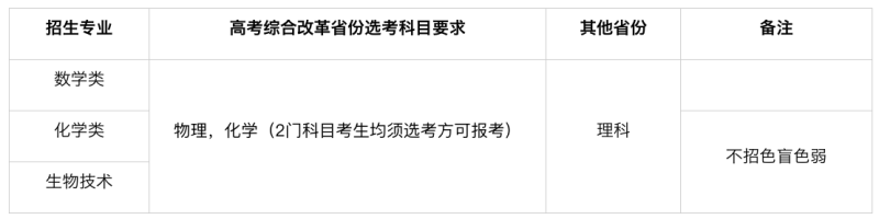 化學(xué)類、生物技術(shù)入圍成績(jī)=高考文化成績(jī)(不含任何政策加分)