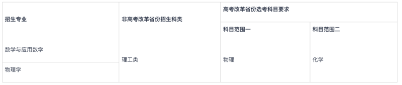 我校強基計劃招生專業(yè)為數(shù)學(xué)與應(yīng)用數(shù)學(xué)、物理學(xué),招生科類及選考科目要求見下表?!?/p>