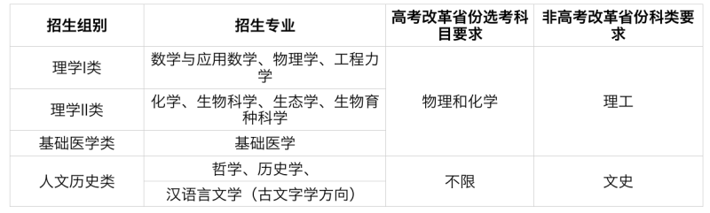 為全面貫徹黨的教育方針,深入落實(shí)《國務(wù)院關(guān)于深化考試招生制度改革的實(shí)施意見》(國發(fā)〔2014〕35號),根據(jù)《教育部關(guān)于在部分高校開展基礎(chǔ)學(xué)科招生改革試點(diǎn)工作的意見》(教學(xué)〔2020〕1號)等文件精神,服務(wù)國家大戰(zhàn)略需求,加強(qiáng)基礎(chǔ)學(xué)科拔尖創(chuàng)新人才選拔培養(yǎng),經(jīng)批準(zhǔn),我校2024年繼續(xù)開展基礎(chǔ)學(xué)科招生