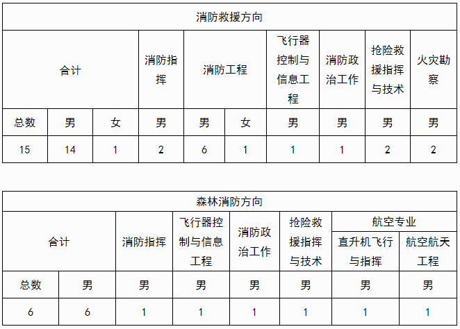 注:消防政治工作專業(yè)招錄文史類考生,其他專業(yè)招錄理工類考生。
