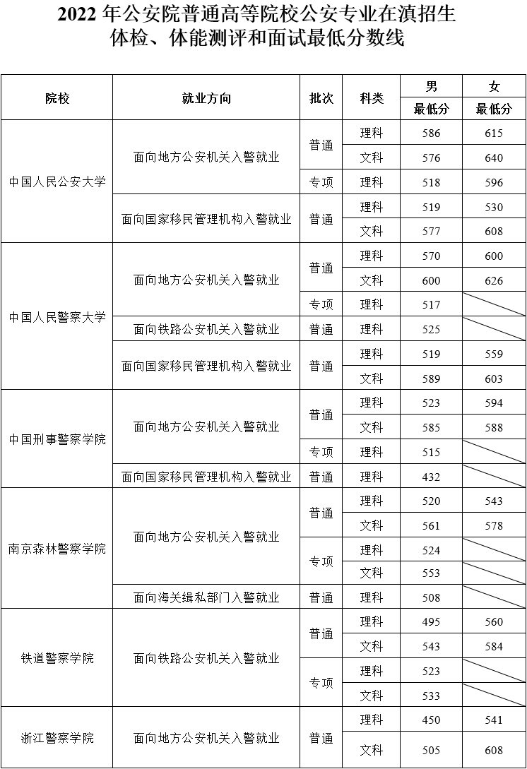 2022年公安普通高等院校公安專業(yè)在云南招生體檢、體能測評和面試工作安排