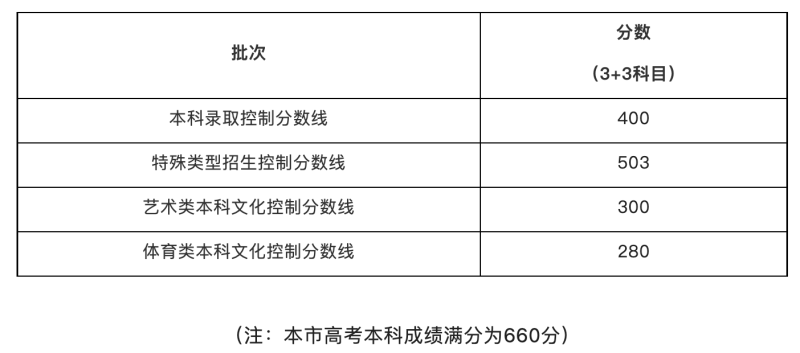 2022年上海市普通高等學(xué)校秋季招生本科各批次錄取控制分?jǐn)?shù)線經(jīng)審定公布如下: