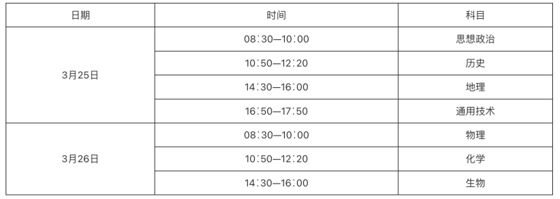 本次開考思想政治、歷史、地理、通用技術(shù)、物理、化學(xué)、生物等7科,各科考試內(nèi)容及形式將依據(jù)《陜西省普通高中學(xué)業(yè)水平考試說明》執(zhí)行??荚嚂r(shí)間安排如下: