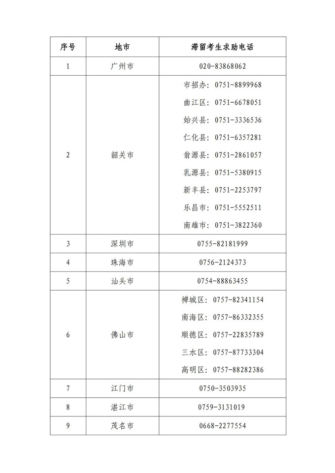 廣東省2023年普通高考藝術(shù)類術(shù)科統(tǒng)考滯留考生求助聯(lián)系電話