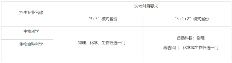 2023年中國(guó)農(nóng)業(yè)大學(xué)強(qiáng)基計(jì)劃招收專業(yè)為:生物科學(xué)、生物育種科學(xué),考生可填報(bào)一至二個(gè)專業(yè)志愿,并填報(bào)是否服從專業(yè)調(diào)劑。非高考綜合改革省份招收理工類考生;高考綜合改革省份選考科目需滿足以下要求: