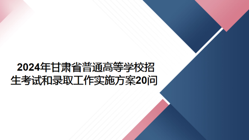 2024年甘肅省普通高等學校招生考試和錄取工作實施方案20問