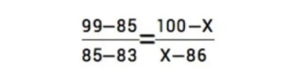 舉例說明:假如小王的地理科目原始成績?yōu)?5分,在當年全省參加該科目考試的考生中位于前2.5%,根據(jù)上表,該成績位列A等級,該等級的賦分區(qū)間為100-86分。根據(jù)考生原始成績的分布,可知A等級的原始分數(shù)區(qū)間(假設為99-83分),那么小王地理科目的賦分成績(X)可通過如下公式計算: