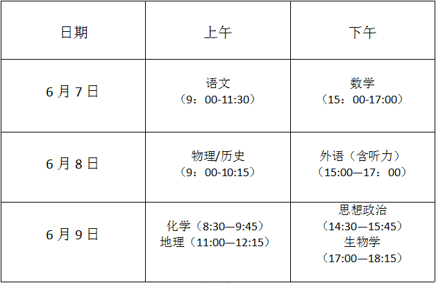 全國(guó)統(tǒng)考科目考試時(shí)間以教育部公布為準(zhǔn),如有調(diào)整,貴州省選擇性考試科目的考試安排做相應(yīng)調(diào)整。
