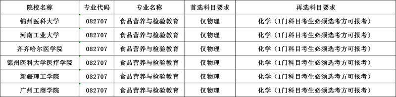 首頁> 知識庫> 食品營養(yǎng)與檢驗教育專業(yè)高考報考選考科目要求
